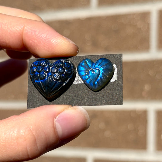 Labradorite (Blue flash) Flower Carved Heart Cabochon - Choose your Stone (W12)