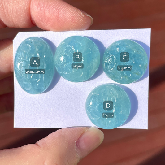 Aquamarine Flower Carved Cabochon - Choose your Stone (W10)