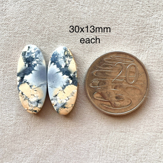 Maligano Jasper Cabochon Pair - Oval 30mm x 13mm (W7)