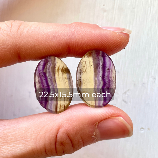 Bi-colour Purple & Yellow Fluorite Oval Cabochon Pair W2