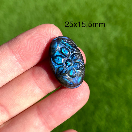 Blue Labradorite Flower Carved Oval Cabochon - 25mm x 15.5mm - W3