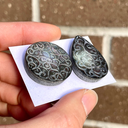 Tahitian Black Pearl Carved Cabochon - Choose your Stone (W5)