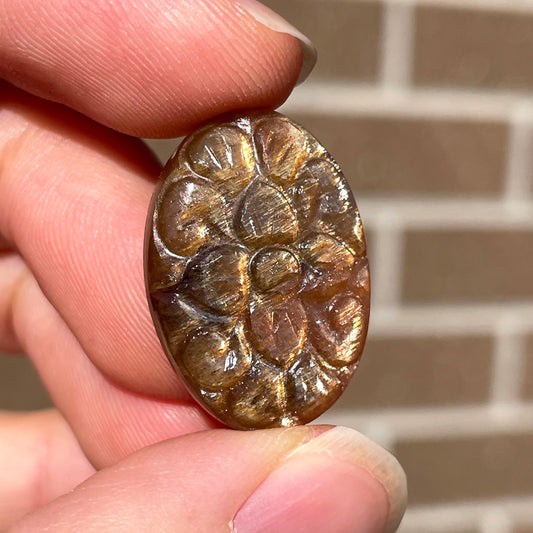 Golden Sunstone Flower Carved Oval Cabochon - 25mm x 17mm - W3