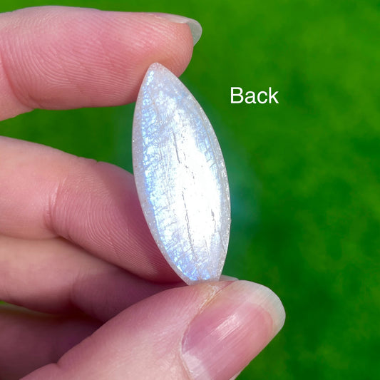 Belomorite Moonstone Flower Carved Marquise Cabochon - 33.5mm x 13mm - W5