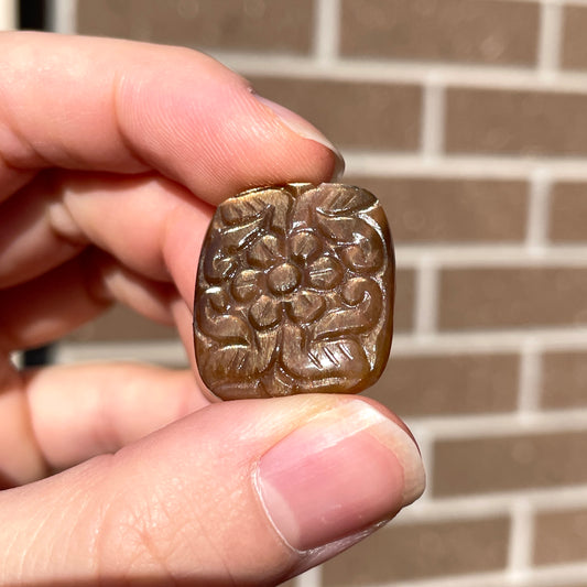 Golden Sunstone Flower Carved Rectangle Cabochon - 24.5mm x 21mm - W3