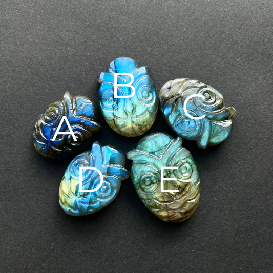 Labradorite Owl Carved Cabochon - Choose your Stone