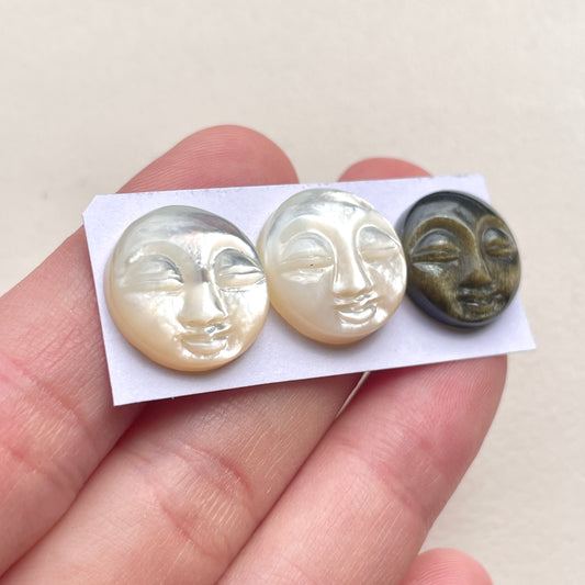 Moon Face Carved Round Cabochon - Freshwater Pearl & Golden Sheen Obsidian - Choose your Stone (W8)