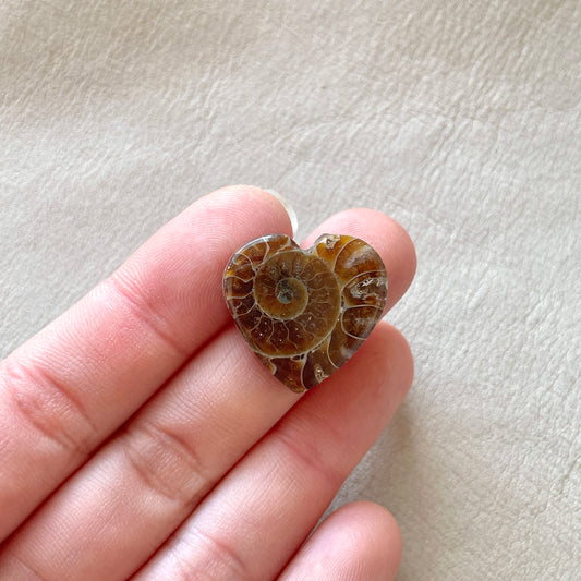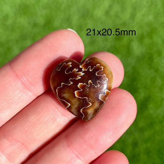 Leaf-pattern Ammonite Fossil Heart Cabochon (W9)