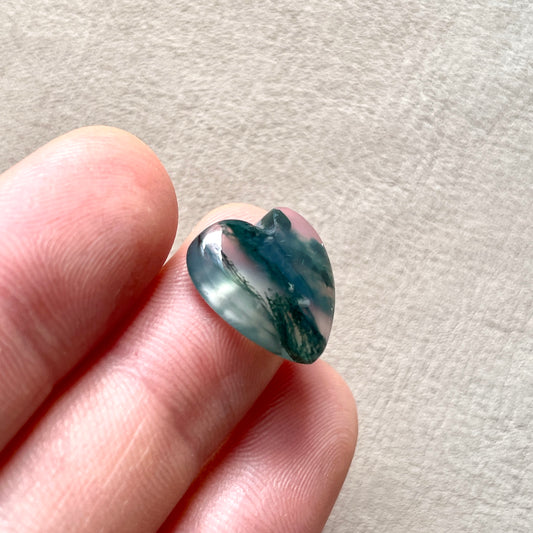 Moss Agate mini Heart Cabochon - 15x15mm (W4)