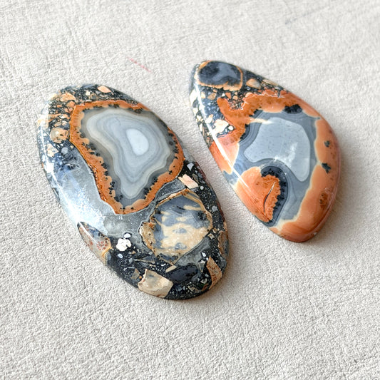 Boulder Rhodochrosite Cabochon Pair - 31mm x 22.5mm (W5)