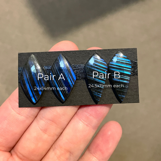 Blue Labradorite Cabochon Pairs (Unique Stripe Flash) - Choose your Pair (W8)