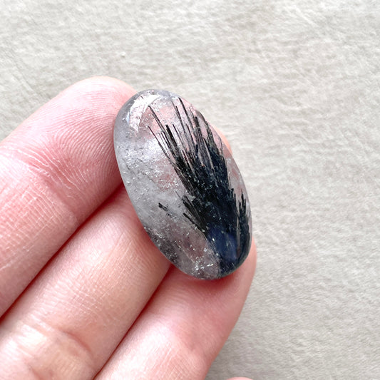 Black Rutilated Quartz Oval Cabochon - 30.5x18mm - W6