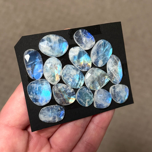 12-19mm Rainbow Moonstone Cabochon Rose cut - Choose your Stone (W8)