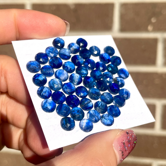 6mm Indigo Blue Kyanite Cabochons Rose Cut - Set of 3
