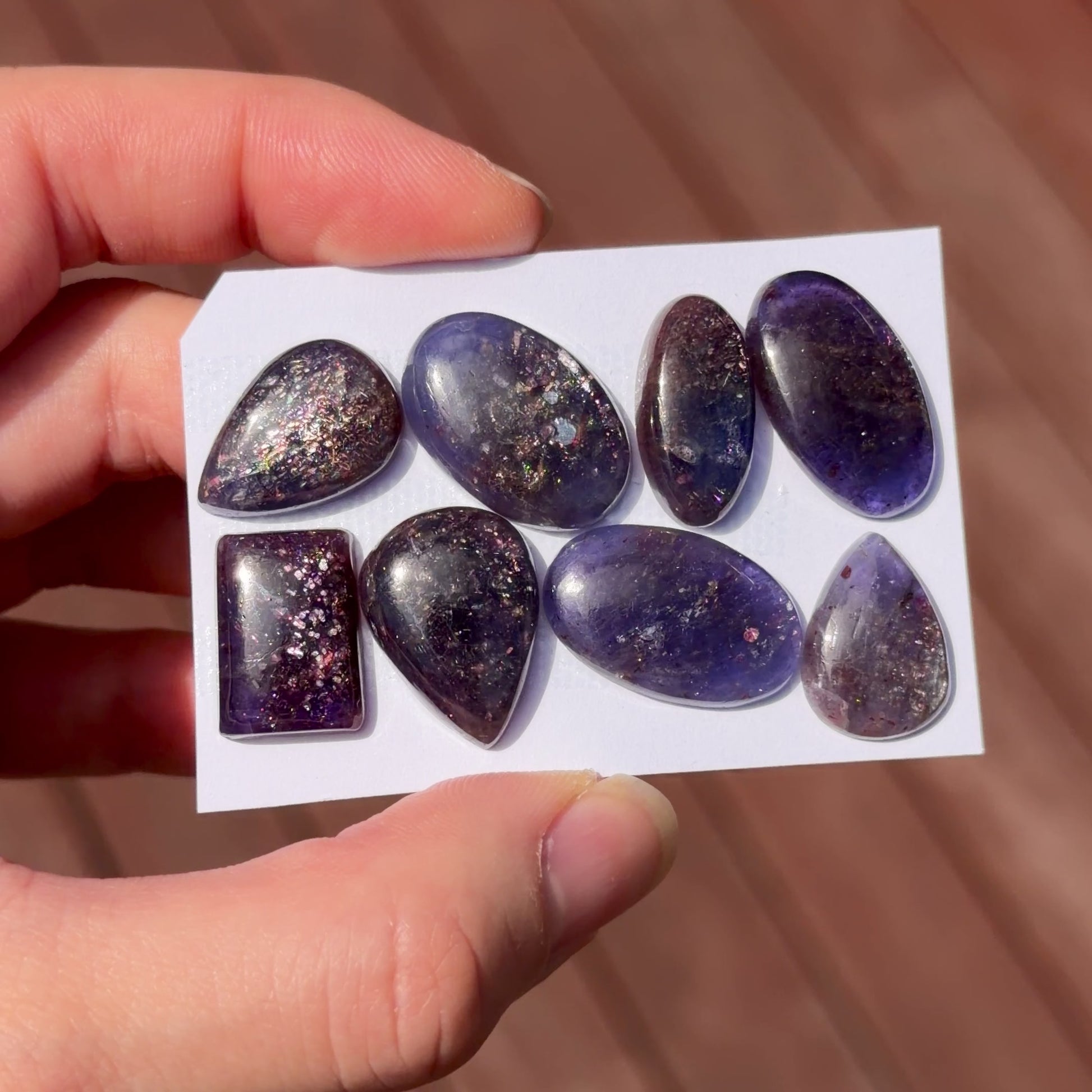 This listing is for 1x Bloodshot (Rainbow Confetti) Iolite cabochon as shown. Select your stone from the menu below.