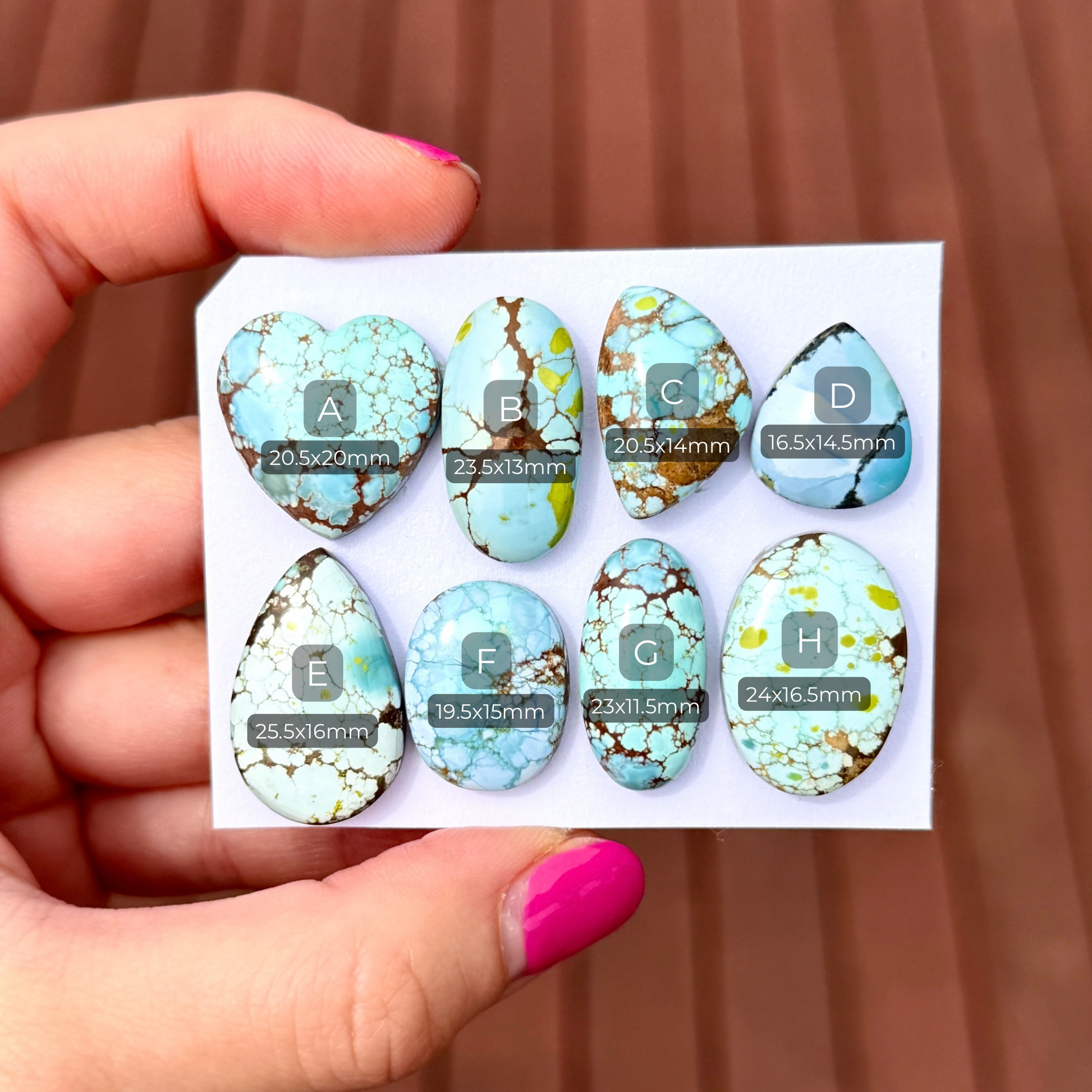 Each cabochon is polished on the top to a high shiny finish & has been backed with a high performance backing compound to add to the stone’s durability and life span.