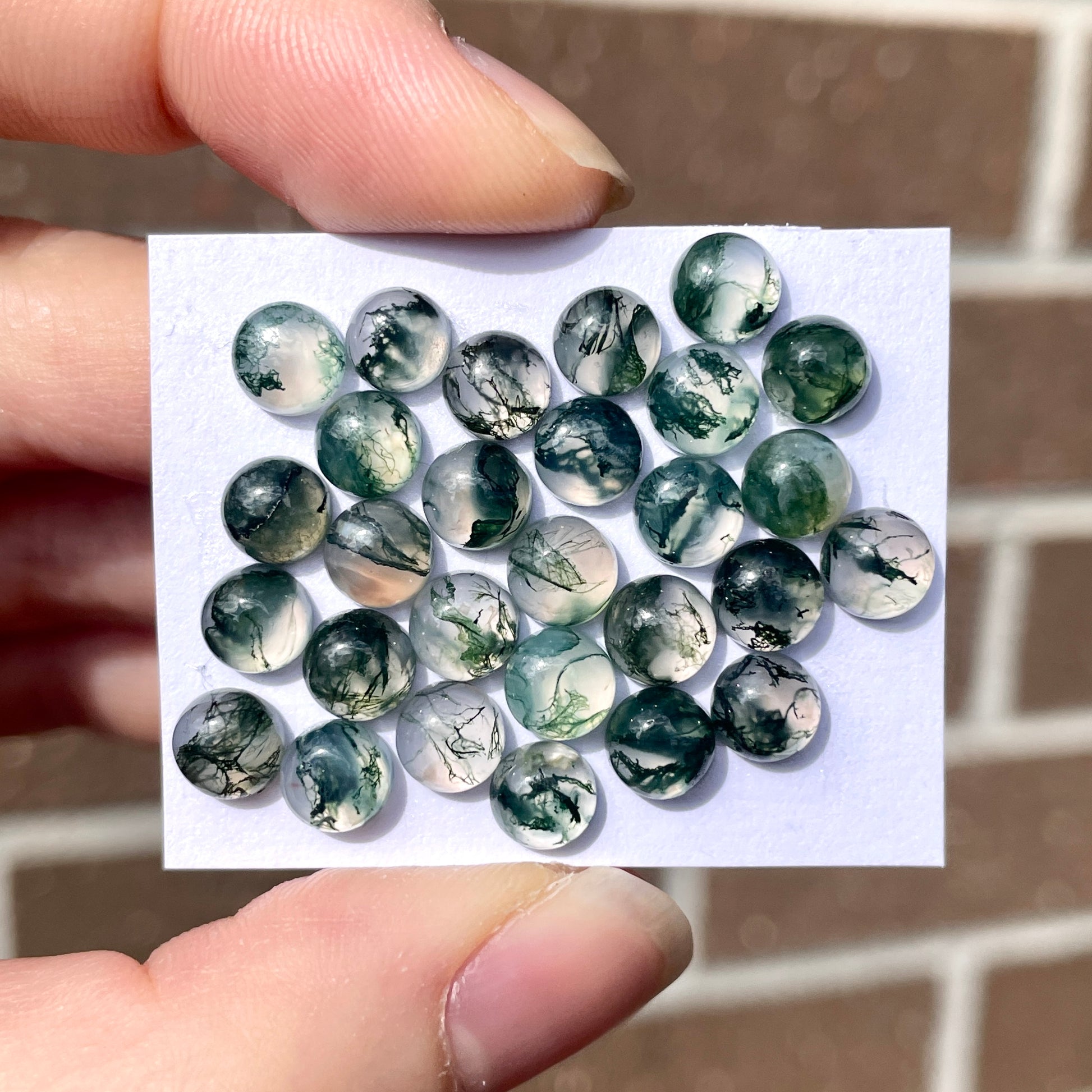 This listing is for a set of 3x hand selected 6mm round green Moss Agate smooth cabochons. A set of 3 stones will be hand selected for you.