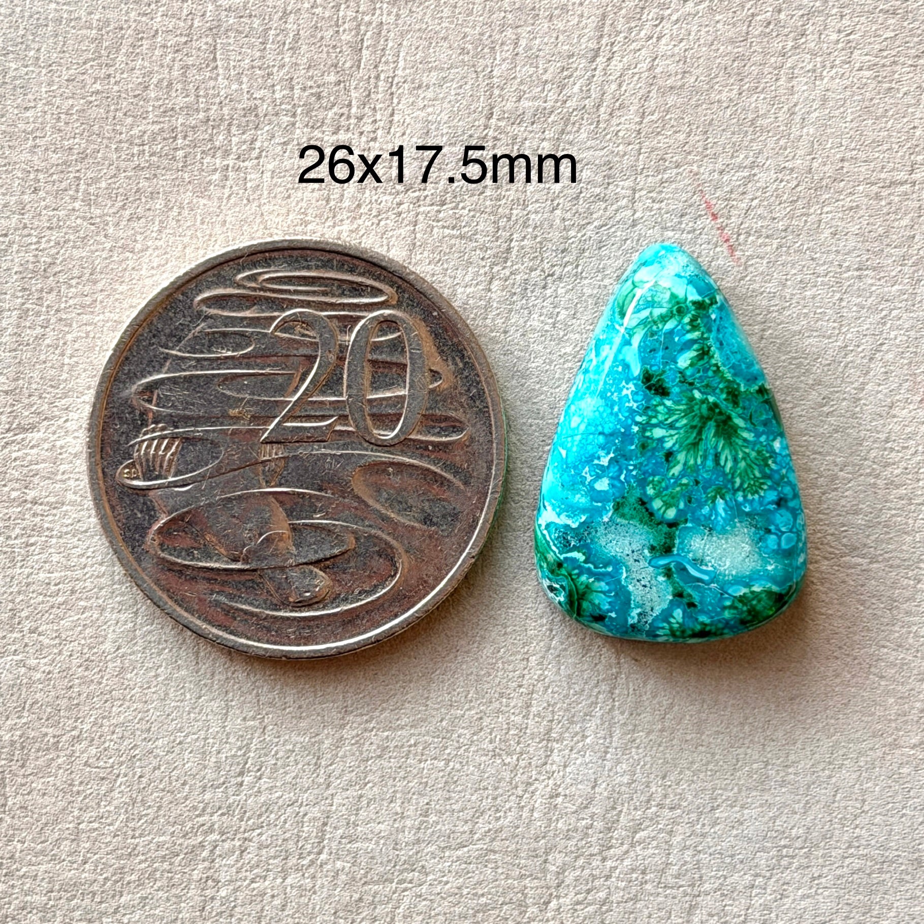 ‘Blooms’ Malachite Chrysocolla Teardrop Cabochon Smooth 26mm x 17.5mm (W8)
