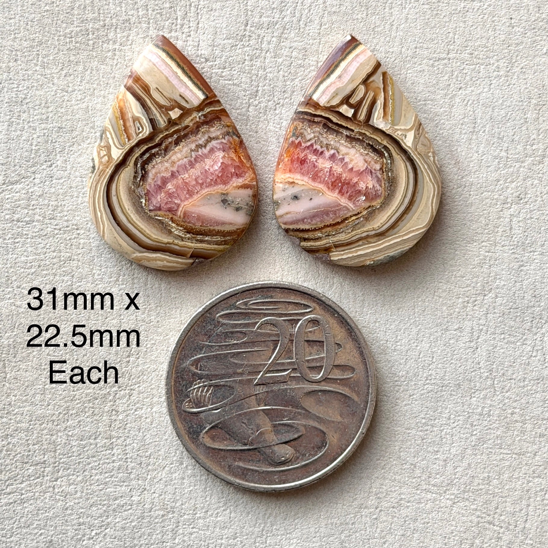 Boulder Rhodochrosite Cabochon Pair - 31mm x 22.5mm (W5)