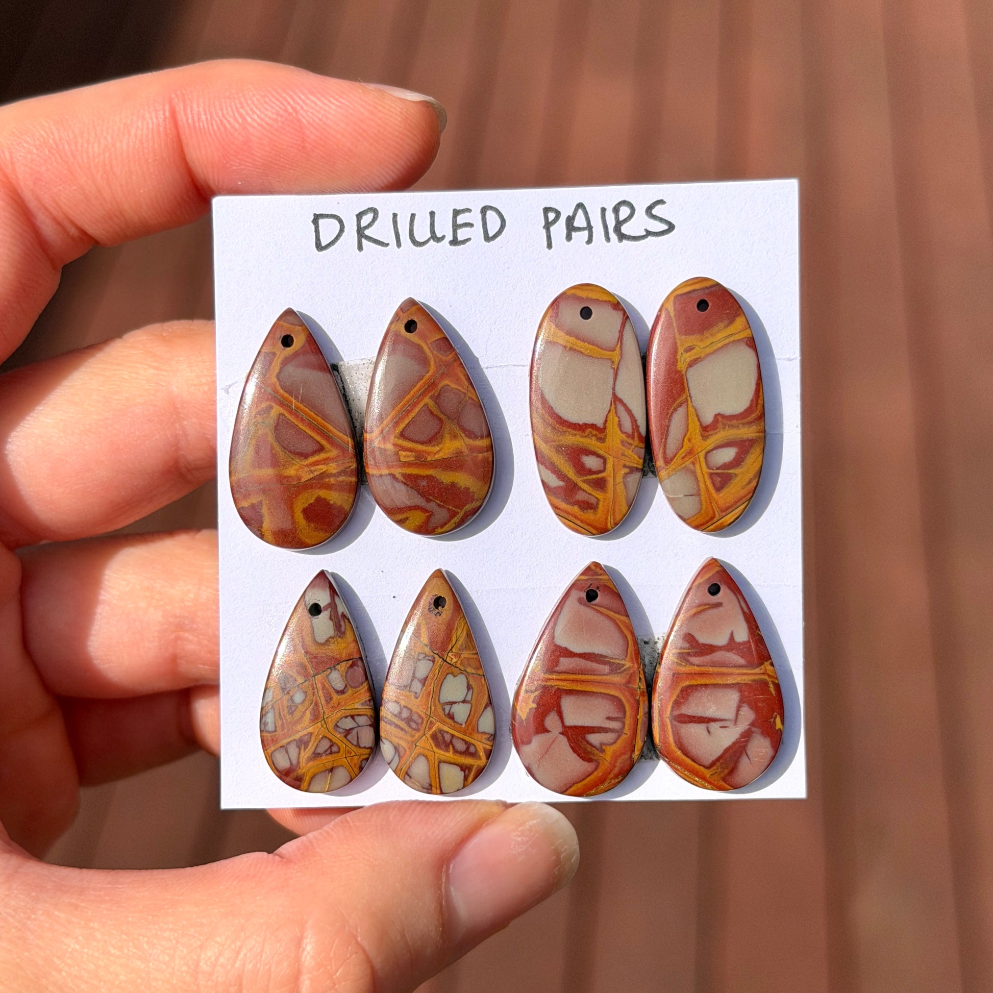 DRILLED Noreena Jasper (Australian) Cabochon Pairs - Choose your Pair (W9)