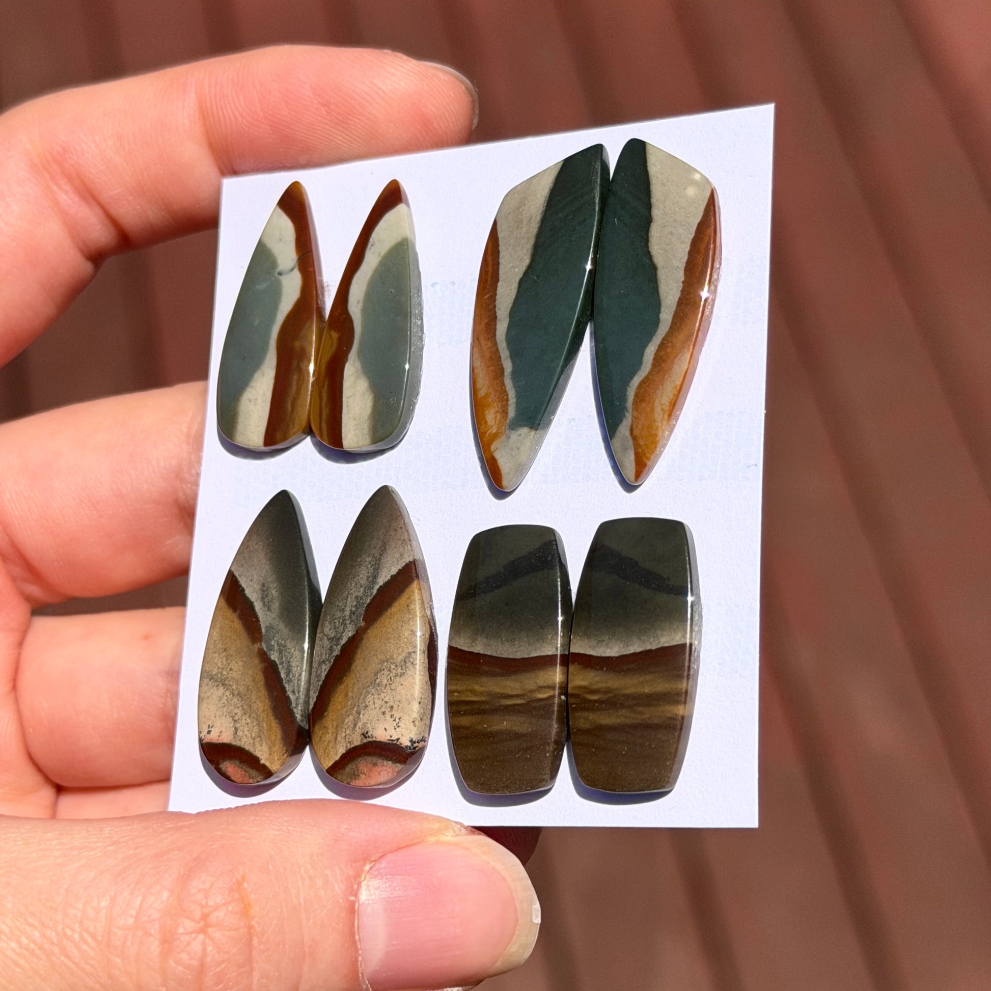 Scenic Polychrome Jasper Cabochon Pairs - Choose your Pair (W3-EY)