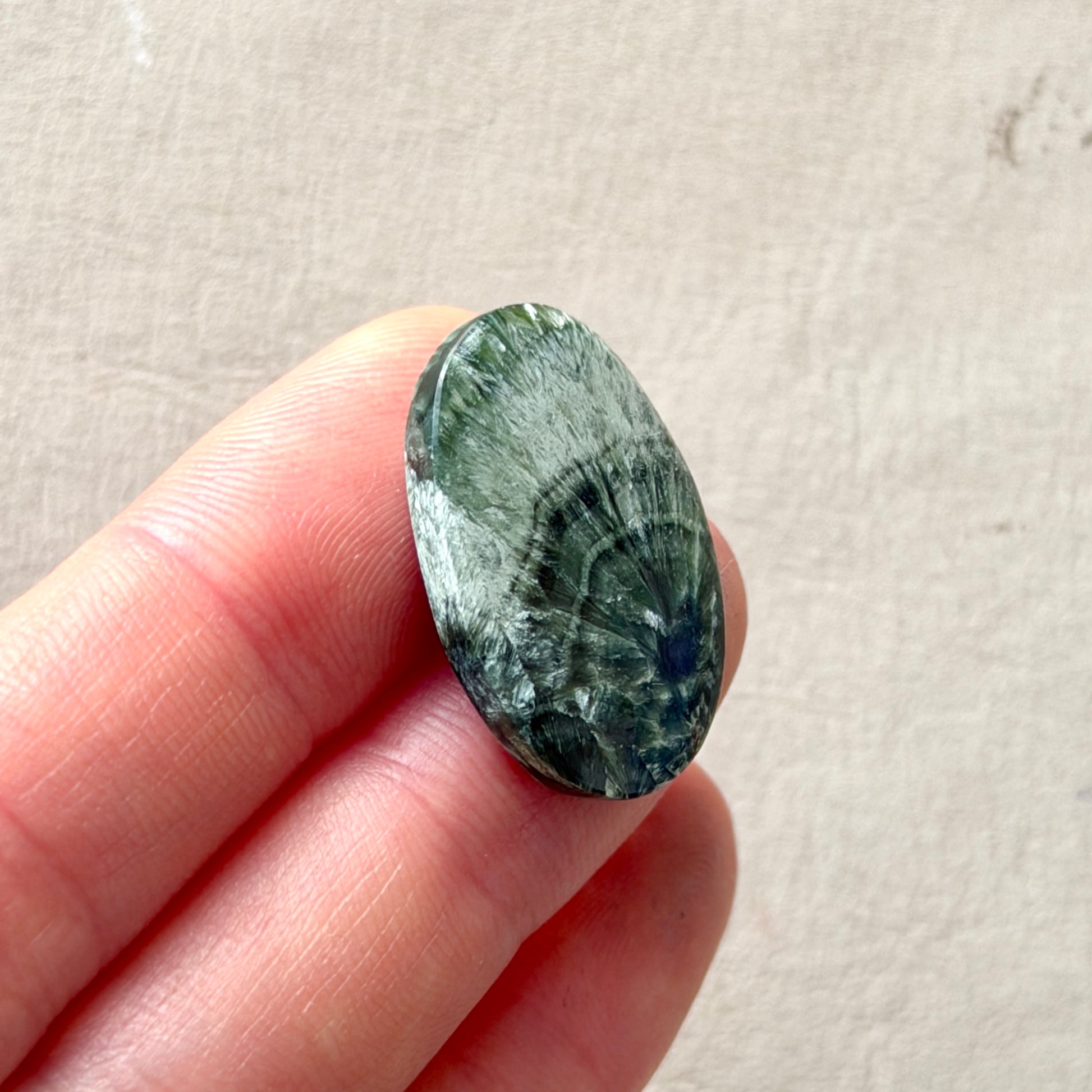 This listing is for a beautiful green Seraphinite Cabochon as shown. You will receive the same exact stone as you see in the photos.